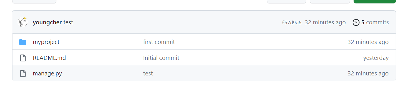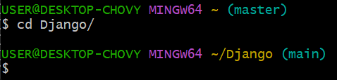 모든 파일을 git에 올릴 것이기에 git add .을 입력해준다. 만일 하나의 파일을 올리고 싶다면 git add manage.py를 입려해주면 된다.